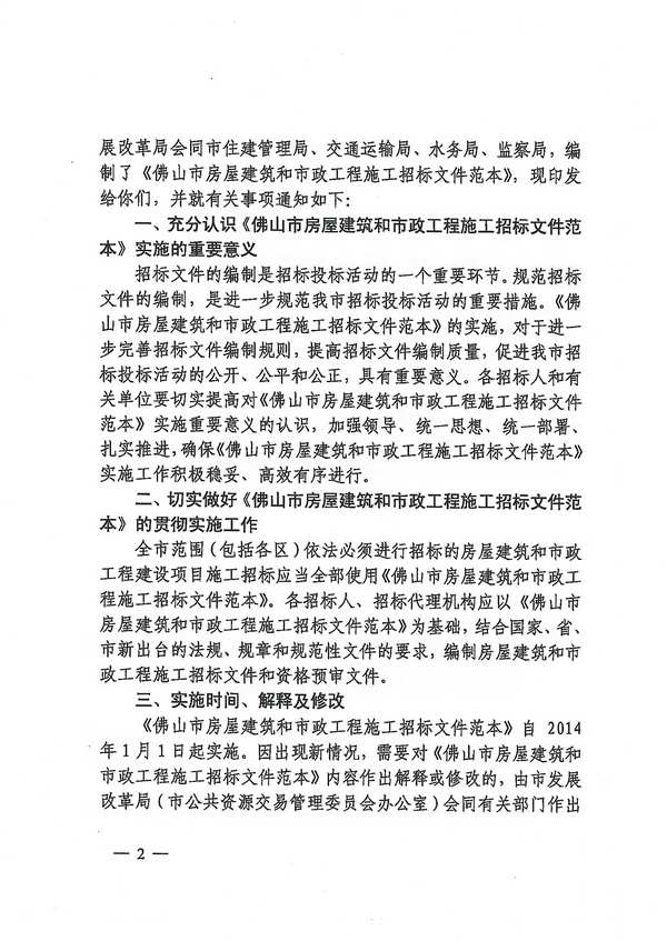 佛山市房屋建筑和市政工程施工招標(biāo)文件范本(2014年1月版)