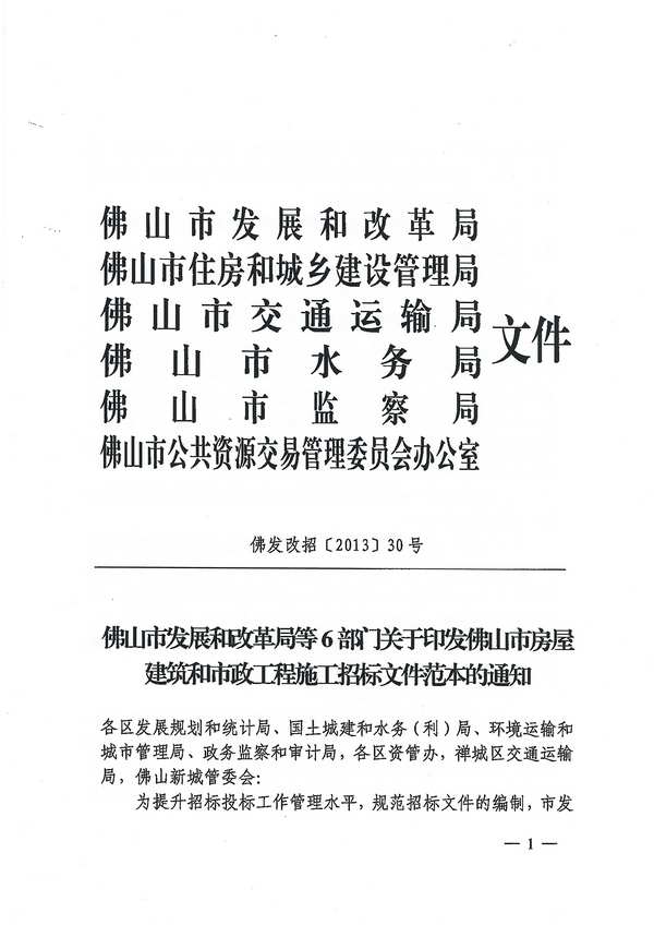 轉(zhuǎn)佛山市發(fā)展和改革局等6部門(mén)關(guān)于印發(fā)佛山市房屋建筑和市政工程施工招標(biāo)文件范本的通知(佛發(fā)改招[2013]30號(hào))