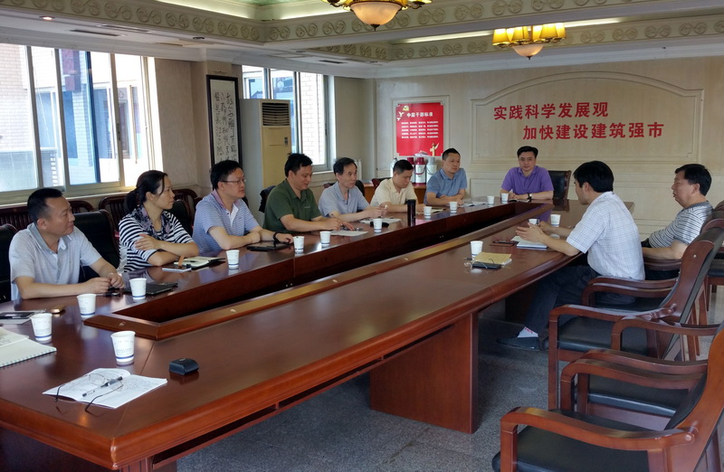 東陽市建筑業(yè)管理局朱騰毅副局長向調研組介紹扶持建筑企業(yè)發(fā)展的措施