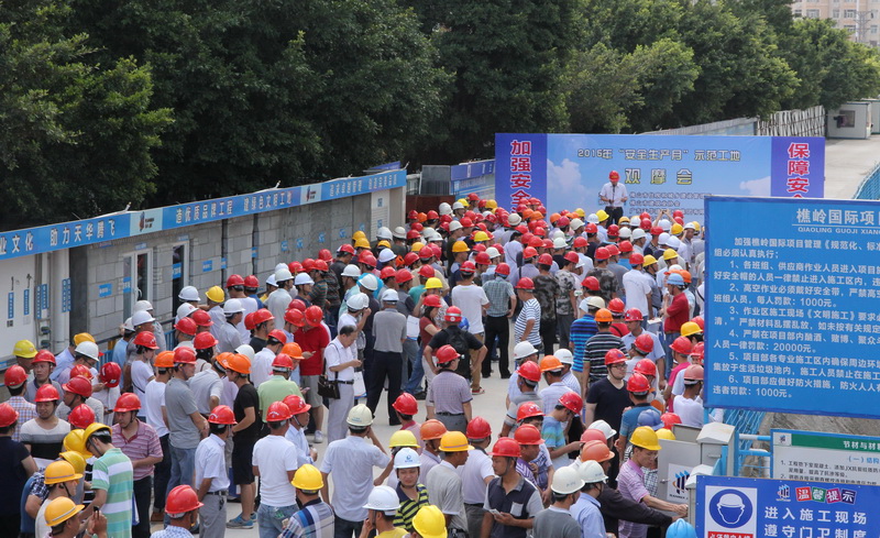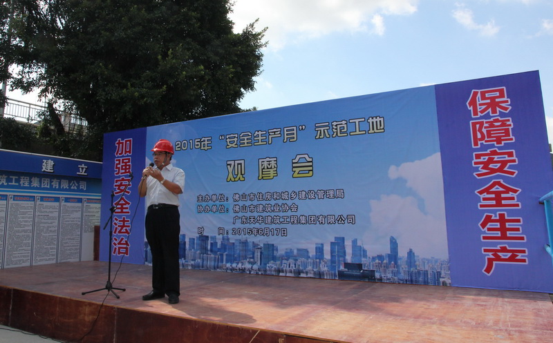 為了進一步地加強建筑行業(yè)從業(yè)人員的安全意識,做好安全生產(chǎn),圍繞“加強安全法治、保障安全生產(chǎn)”主題,結(jié)合2015年我市建設(shè)系統(tǒng)安全生產(chǎn)月活動方案,6月17日上午,由市住建管理局主辦,佛山市建筑業(yè)協(xié)會、廣東天華建筑工程集團有限公司協(xié)辦的“2015年‘安全生產(chǎn)月’示范工地觀摩會”在“樵嶺國際商業(yè)中心3-8棟工程項目”隆重舉辦。市住建管理局林國榮副局長和有關(guān)科室負責(zé)人、市建設(shè)工程施工安全監(jiān)督站相關(guān)負責(zé)人、各區(qū)建設(shè)行政主管部門分管領(lǐng)導(dǎo)和安監(jiān)站站長,以及全市各施工企業(yè)、監(jiān)理單位的負責(zé)人、項目經(jīng)理、總監(jiān)理工程師等900余人參加了活動。觀摩會由我會副會長兼秘書長姚毅文主持。