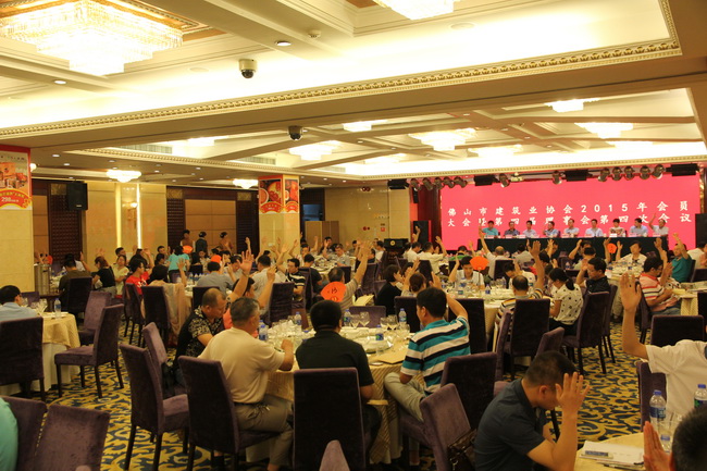 會(huì)員代表舉手通過佛山市建筑業(yè)協(xié)會(huì)2014年度工作總結(jié)及2015年的工作計(jì)劃的審議