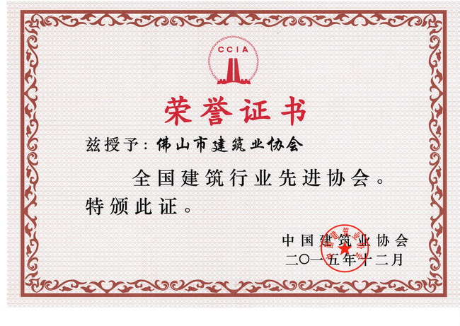 佛山市建筑業(yè)協(xié)會成立15周年以來,在規(guī)范建筑業(yè)市場秩序、進(jìn)一步推動行業(yè)的改革與發(fā)展等作出了突出貢獻(xiàn),受到了業(yè)界的認(rèn)可和充分的肯定。在2015年全國建筑行業(yè)先進(jìn)協(xié)會和優(yōu)秀秘書長表彰活動中,我會榮獲“全國建筑行業(yè)先進(jìn)協(xié)會”稱號。同時,我會姚毅文秘書長被中國建筑業(yè)協(xié)會授予“全國建筑行業(yè)優(yōu)秀秘書長”稱號。