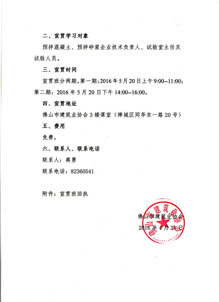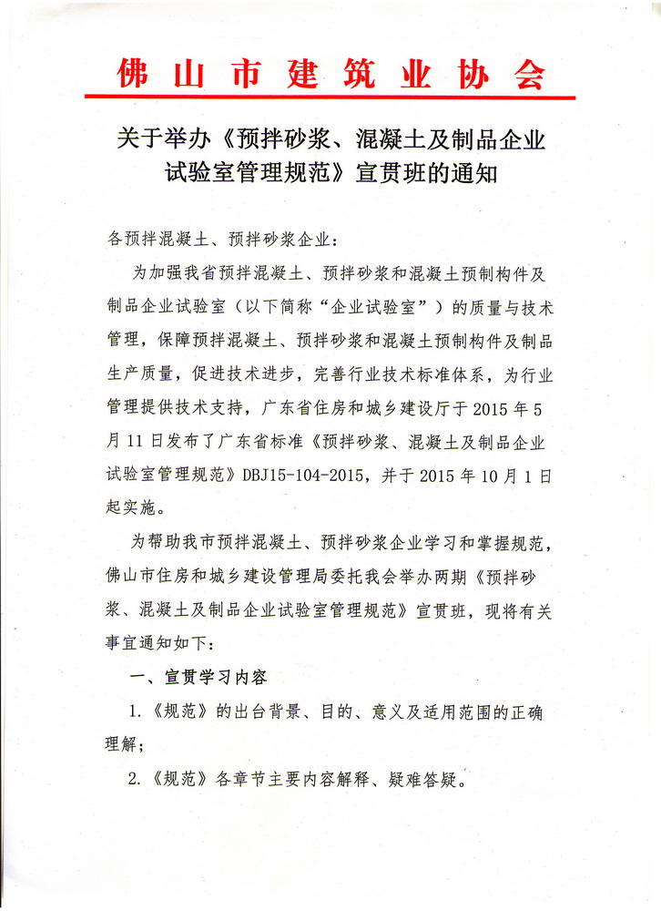 關(guān)于舉辦《預(yù)拌砂漿、混凝土及制品企業(yè)試驗(yàn)室管理規(guī)范》宣貫班的通知(2016/05/03)