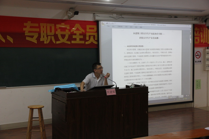 為進(jìn)一步加強(qiáng)建筑行業(yè)從業(yè)人員的安全意識(shí),做好安全生產(chǎn)常態(tài)化工作,受佛山市住房和城鄉(xiāng)建設(shè)管理局委托,我會(huì)于2016年6月24日舉辦了一期《項(xiàng)目負(fù)責(zé)人、專(zhuān)職安全員安全生產(chǎn)繼續(xù)教育培訓(xùn)班》。培訓(xùn)的前半部分,由具有多年建筑施工現(xiàn)場(chǎng)管理經(jīng)驗(yàn)的姚毅文高級(jí)工程師為學(xué)員們講解與安全知識(shí)相關(guān)的法律法規(guī),并對(duì)《安全生產(chǎn)法》、《建設(shè)工程安全生產(chǎn)管理?xiàng)l例》里的法律條文進(jìn)行詳細(xì)的闡述。而后半部分,佛山市建設(shè)工程施工安全監(jiān)督站站長(zhǎng)助理何建輝從建筑工程安全生產(chǎn)動(dòng)態(tài)的扣分機(jī)制、扣分辦法的主要內(nèi)容,為學(xué)員“點(diǎn)對(duì)點(diǎn)”地逐一查找、分析安全生產(chǎn)存在的一系列問(wèn)題。