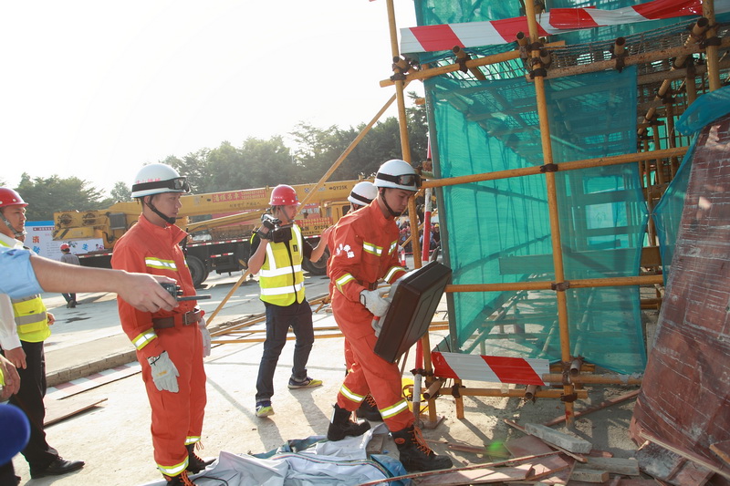 禪城區(qū)消防大隊隊員在用生命探測儀進行探測