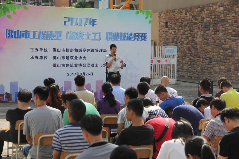 2017年9月26日上午,由佛山市住建管理局主辦,市建筑業(yè)協(xié)會、市建筑業(yè)協(xié)會混凝土與水泥制品分會承辦的“2017年佛山市工程質(zhì)量(混凝土工)職業(yè)技能競賽”在佛山市建設(shè)職業(yè)技能培訓基地“鳴鑼開鼓”,來自我會的26家會員企業(yè)的52名選手踴躍參加。本次競賽由我會混凝土與水泥制品分會秘書長馮焱犇主持。