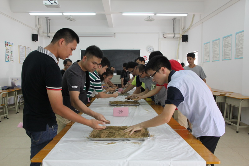 本次競賽是采用目測觀察、手摸體驗的方法判斷混凝土原材料樣品的四項物理性能指標——混凝土坍落度、砂含水率、砂細度模數(shù)和粉煤灰細度。