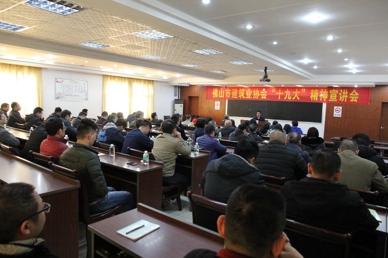 新時代就要有新氣象、新作為。在全國掀起深入學(xué)習(xí)宣傳貫徹十九大精神的熱潮下,佛山市建筑業(yè)協(xié)會為更好地宣傳貫徹報告精神、深入學(xué)習(xí)其報告內(nèi)容,推進(jìn)我會黨支部“1+N”群組鏈黨建工作,于2月8日下午,在協(xié)會五樓多媒體課室舉辦了一期“十九大”精神宣講會。宣講會特邀佛山市市委委員、市住房和城鄉(xiāng)建設(shè)管理局黨組書記、局長林國榮前來講授,我會“1+N”群組鏈成員、理事會成員以及秘書處全體工作人員近百人參加了學(xué)習(xí)。