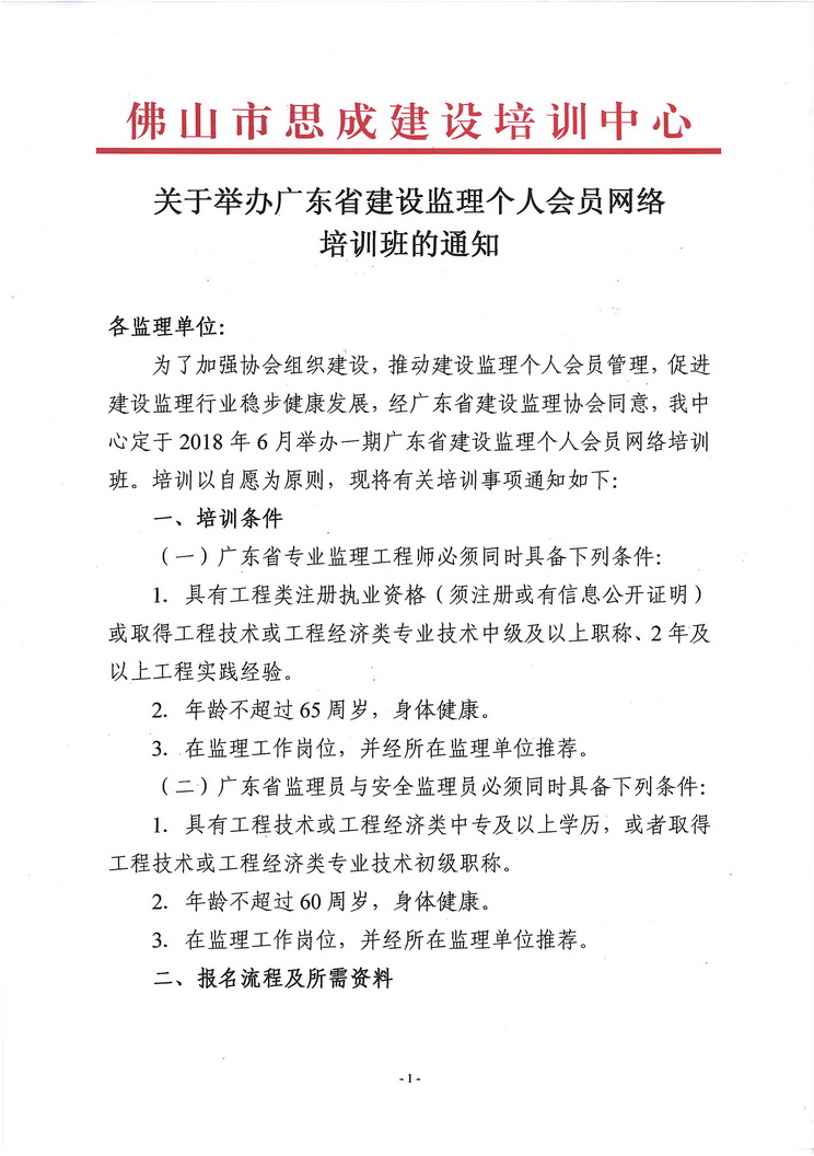 關(guān)于舉辦廣東省建設(shè)監(jiān)理個(gè)人會(huì)員網(wǎng)絡(luò)培訓(xùn)班的通知(2018/04/25)