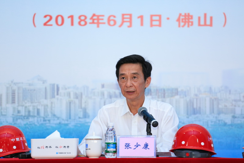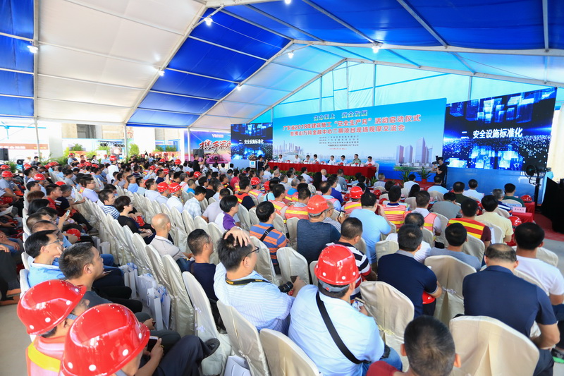 本次活動由廣東省住房城鄉(xiāng)建設廳主辦、省建筑安全協(xié)會協(xié)辦、佛山市住房和城鄉(xiāng)建設管理局和中國建筑第五工程局有限公司廣東公司承辦。省住建廳廳長張少康、副廳長蔡瀛等省領導,佛山市副市長趙海,市住建管理局黨組書記、局長林國榮等領導出席了儀式。來自省、市等各級住建部門、安全監(jiān)督機構、建筑業(yè)協(xié)會、建筑安全協(xié)會和全省各地的施工、監(jiān)理單位等近2000人參加了本次活動。