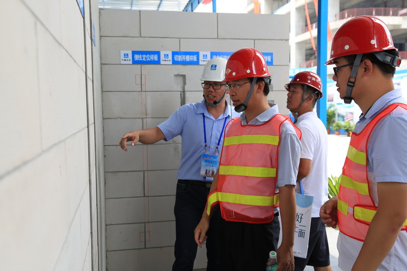 項目人員向觀摩人員介紹樣板引路中的施工細節(jié)