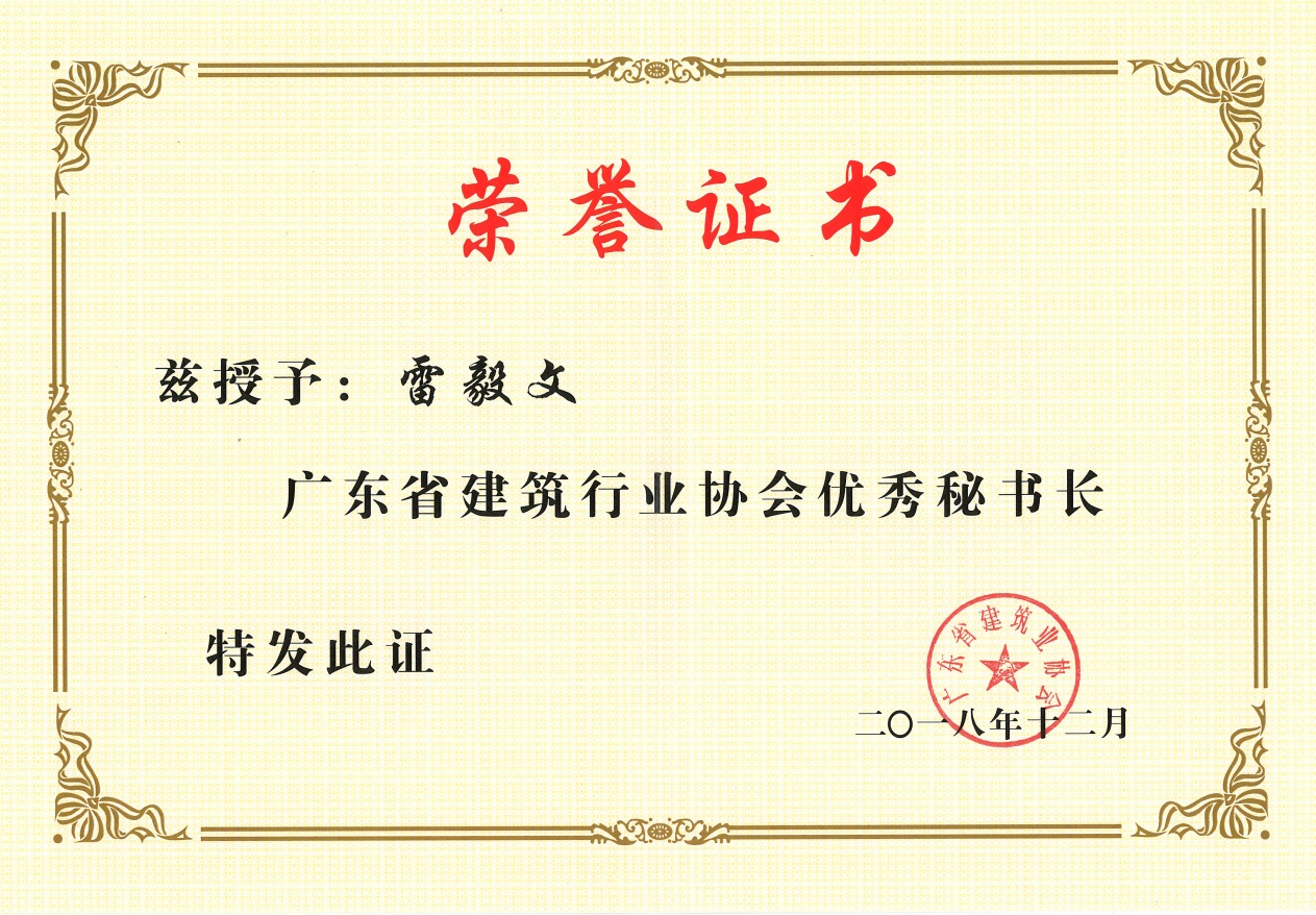 在2018年廣東省建筑行業(yè)先進協(xié)會和優(yōu)秀秘書長評比表彰活動中,我會榮獲“廣東省建筑行業(yè)先進協(xié)會”稱號。同時,我會雷毅文副秘書長被廣東省建筑業(yè)協(xié)會授予“廣東省建筑行業(yè)優(yōu)秀秘書長”稱號。