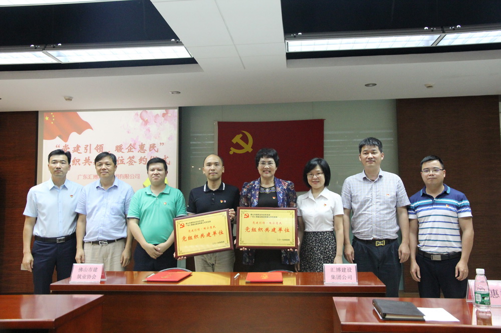 4月25日下午,廣東匯博建設(shè)集團(tuán)黨群活動(dòng)室,在禪城區(qū)區(qū)委組織部、禪城區(qū)住房城鄉(xiāng)建設(shè)和水利局第二黨支部、祖廟街道辦公室以及佛山市建筑業(yè)協(xié)會(huì)相關(guān)領(lǐng)導(dǎo)的共同見(jiàn)證下,佛山市建筑業(yè)協(xié)會(huì)黨支部書(shū)記雷毅文與廣東匯博建設(shè)集團(tuán)有限公司黨支部書(shū)記周惠娜共同簽定了《黨組織共建活動(dòng)協(xié)議書(shū)》,并互贈(zèng)了共建牌匾。