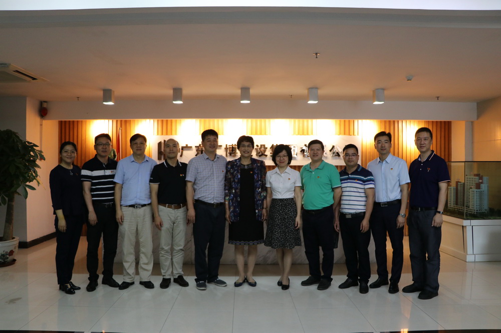 佛山市建筑業(yè)協(xié)會(huì)黨支部書(shū)記、副秘書(shū)長(zhǎng)雷毅文(左四)和廣東匯博建設(shè)集團(tuán)有限公司黨支部書(shū)記、董事長(zhǎng)周惠娜(右四)互贈(zèng)黨建共建牌匾