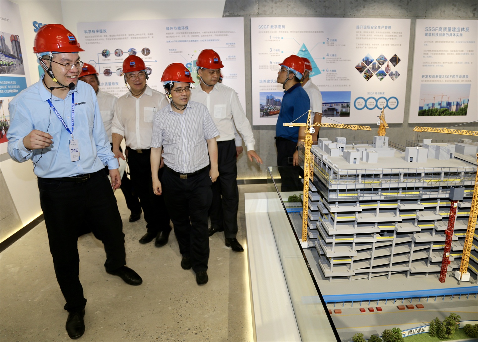 佛山市住建局陳浩斌局長(左四)一同在項目負(fù)責(zé)人的帶領(lǐng)下參觀工程項目