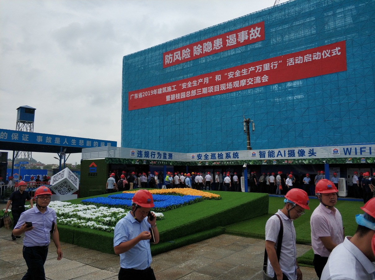 2019年6月1日下午,廣東省2019年建筑施工“安全生產(chǎn)月”和“安全萬里行”活動啟動儀式在佛山順德碧桂園總部三期項目隆重舉行。省住房城鄉(xiāng)建設(shè)廳相關(guān)處室、直屬單位、相關(guān)行業(yè)協(xié)會負(fù)責(zé)人,全省各地級以上市住房城鄉(xiāng)建設(shè)主管部門和廣州市交通運(yùn)輸局、佛山市交通運(yùn)輸局、佛山市軌道交通局的分管領(lǐng)導(dǎo)、質(zhì)安監(jiān)管處(科)長,各地級以上市建筑施工安全監(jiān)督機(jī)構(gòu)、有關(guān)行業(yè)協(xié)會主要負(fù)責(zé)人及有關(guān)人員,廣州、深圳、佛山三地各區(qū)住房城鄉(xiāng)建設(shè)主管部門負(fù)責(zé)人、質(zhì)安監(jiān)管科長、安監(jiān)站負(fù)責(zé)人,我省部分建設(shè)行業(yè)的勞模代表,部分施工企業(yè)、監(jiān)理企業(yè)分管安全生產(chǎn)工作的相關(guān)負(fù)責(zé)人等共1000余人參加了啟動儀式暨現(xiàn)場交流觀摩會。