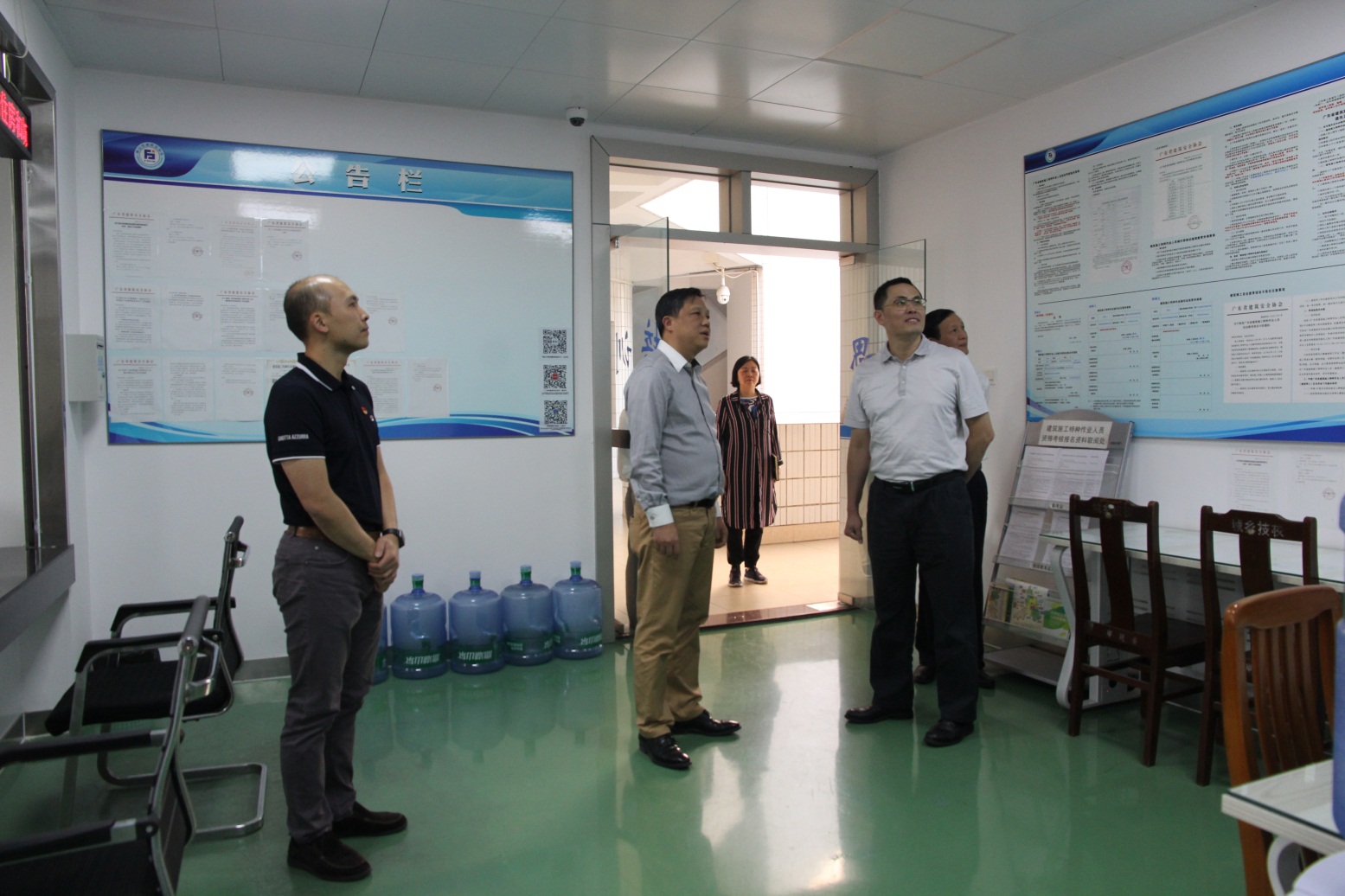 市住建局領(lǐng)導(dǎo)在參觀我會的一站式服務(wù)窗口和查看相關(guān)培訓(xùn)收費標準公布欄