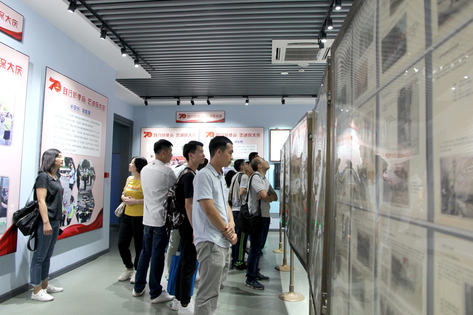 我會(huì)黨員和工作人員在佛山警察歷史博物館大廳前合影