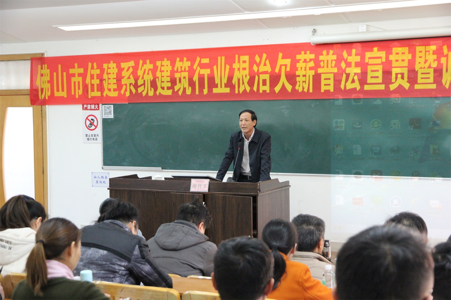 2019年12月6日上午,由佛山市住房和城鄉(xiāng)建設(shè)局主辦、我會(huì)協(xié)辦的佛山市住建系統(tǒng)建筑行業(yè)根治欠薪普法宣貫暨誠(chéng)信管理政策培訓(xùn)于三樓多媒體室圓滿舉辦,我會(huì)特邀中國(guó)人民財(cái)產(chǎn)保險(xiǎn)股份有限公司蔡衛(wèi)青經(jīng)理、佛山市房建集團(tuán)有限公司汪建華高級(jí)工程師、我會(huì)龐志明工程師和白巨滿工程師為一眾企業(yè)出席代表授課,此次培訓(xùn)吸引了300多名企業(yè)代表前來(lái)參加。市住建局工程質(zhì)量安全監(jiān)管科謝育文科長(zhǎng)出席了本次講座,現(xiàn)場(chǎng)座無(wú)虛席,氣氛熱烈,講座由我會(huì)姚毅文秘書長(zhǎng)主持。