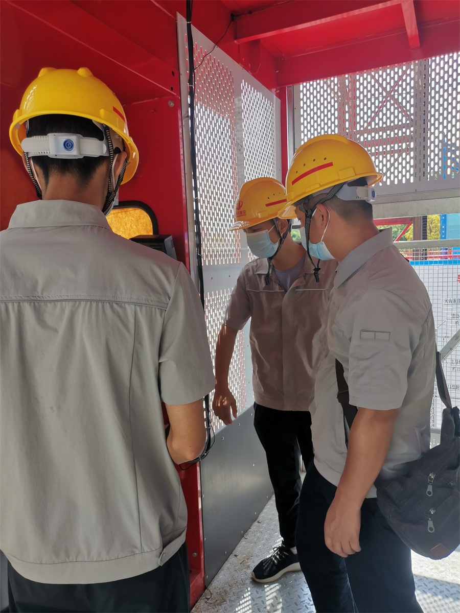 參觀人員對培訓(xùn)基地施工升降機考核設(shè)備進行參觀