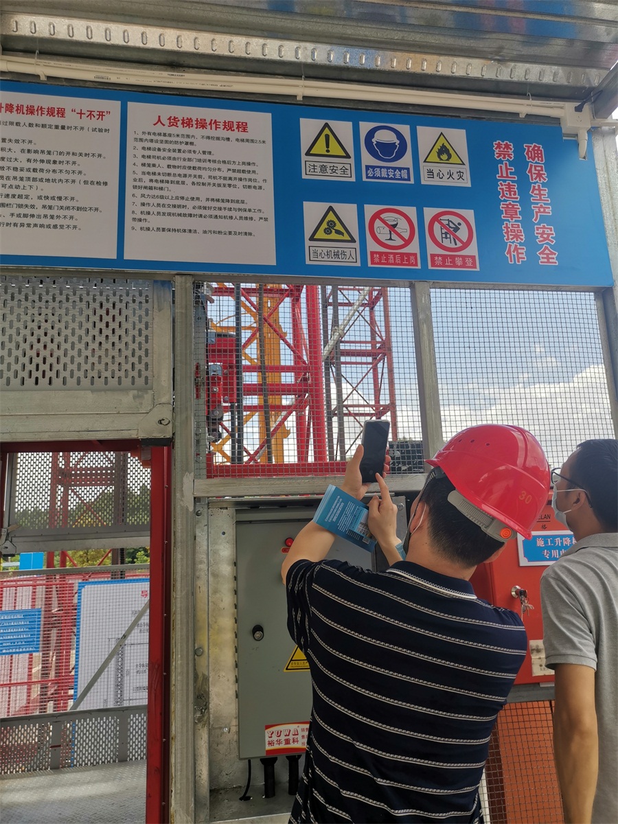 參觀人員對人貨梯操作規(guī)程進行拍照學(xué)習(xí)