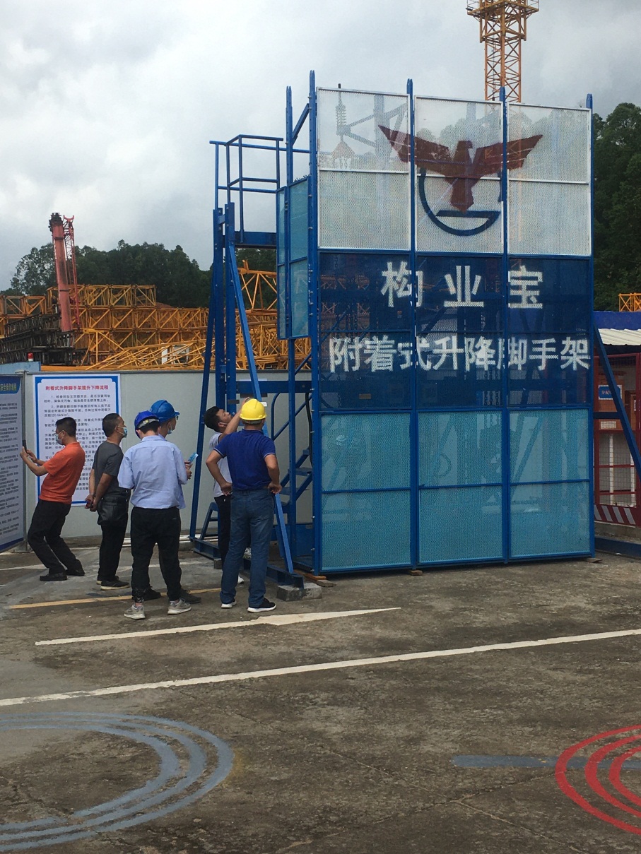 參觀人員對附著式升降腳手架模擬架進行參觀