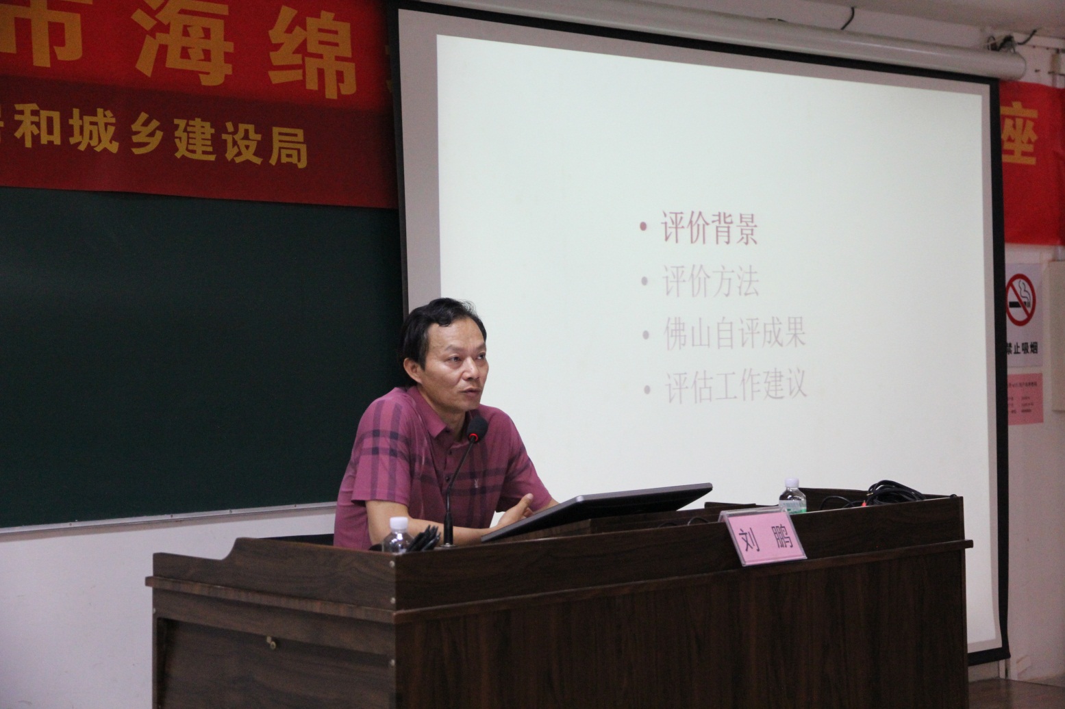 待劉偉賢副科長(zhǎng)對(duì)專家進(jìn)行介紹后,參加人員隨即進(jìn)入了緊湊的課程學(xué)習(xí)當(dāng)中去了。劉總工作為深度參與到我市海綿城市建設(shè)當(dāng)中的資深專家之一,對(duì)我市本次海綿城市評(píng)估工作作出了詳細(xì)的介紹和情況反饋,從評(píng)價(jià)的背景、評(píng)價(jià)的方法、佛山自評(píng)的成果以及評(píng)估工作的建議四大方面去展開(kāi)講解,讓在座各位能夠更加清晰、全面地了解其建設(shè)工作和評(píng)估工作,更加明確其工作目標(biāo)。劉總工強(qiáng)調(diào),海綿城市建設(shè)是2020年是住建部的九項(xiàng)重點(diǎn)工作之一,我們要緊跟國(guó)家政策,要系統(tǒng)化推進(jìn)海綿城市建設(shè)。國(guó)家運(yùn)用“以評(píng)促建”的方式,建立常態(tài)化、標(biāo)準(zhǔn)化的考評(píng)機(jī)制,這將更為有效地推進(jìn)我國(guó)海綿城市建設(shè)的前進(jìn)步伐。