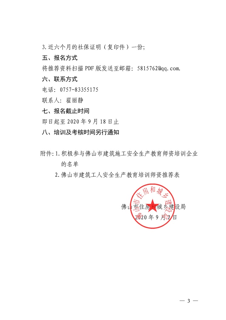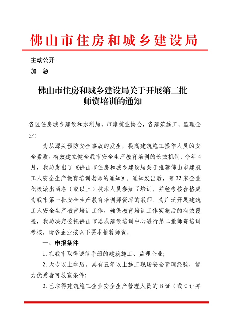 轉(zhuǎn)發(fā)佛山市住房和城鄉(xiāng)建設(shè)局關(guān)于開展第二批師資培訓(xùn)的通知(2020/09/03)