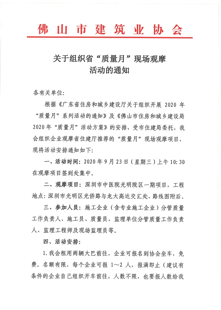 關于組織省“質量月”現(xiàn)場觀摩活動的通知(2020/09/18)