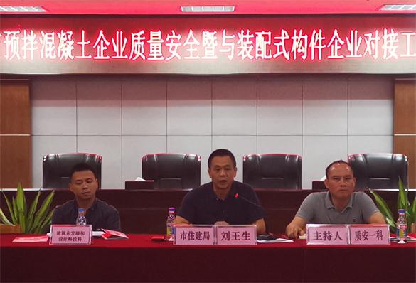 2020年11月26日,由佛山市住房和城鄉(xiāng)建設局舉辦的全市預拌混凝土企業(yè)質量安全與裝配式構件生產(chǎn)企業(yè)對接工作會在市住建局辦公樓西二樓召開。會議由質安一科林建軍科長主持。市住建局劉王生總工程師出席會議并講話,科技設計科、質安一科有關負責人,市建協(xié)混凝土與水泥制品分會會長梁培超、秘書長劉祖河、副秘書長蔣勇及我市50多家預拌混凝土企業(yè)、5家裝配式構件生產(chǎn)企業(yè)代表共60多人參加了會議。