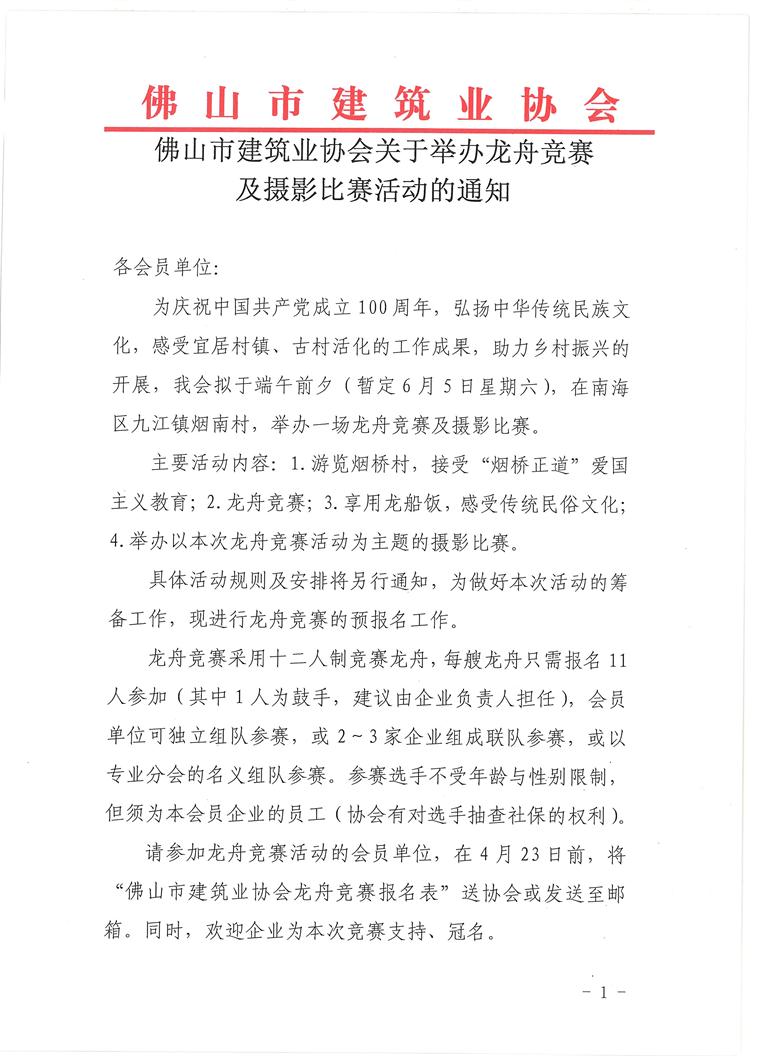 佛山市建筑業(yè)協(xié)會關(guān)于舉辦龍舟競賽和攝影比賽的通知(2021/04/09)