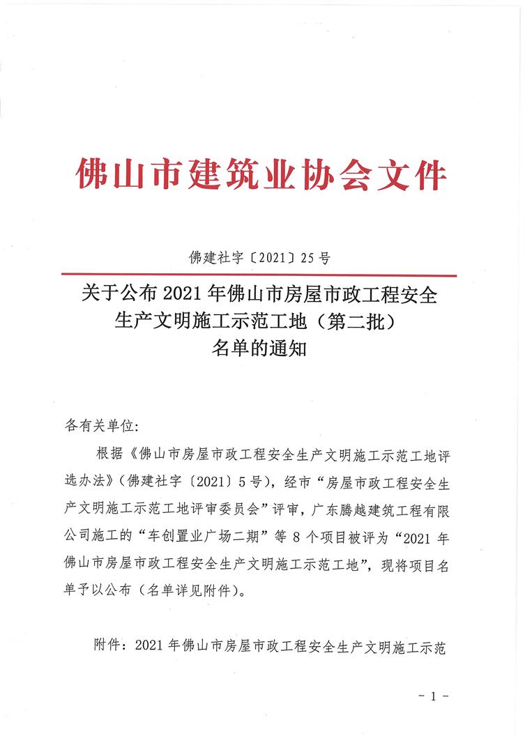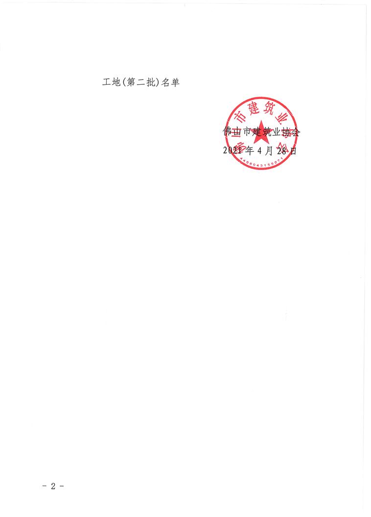 關(guān)于公布2021年佛山市房屋市政工程安全生產(chǎn)文明施工示范工地(第二批)名單的通知(佛建社字〔2021〕25號(hào))