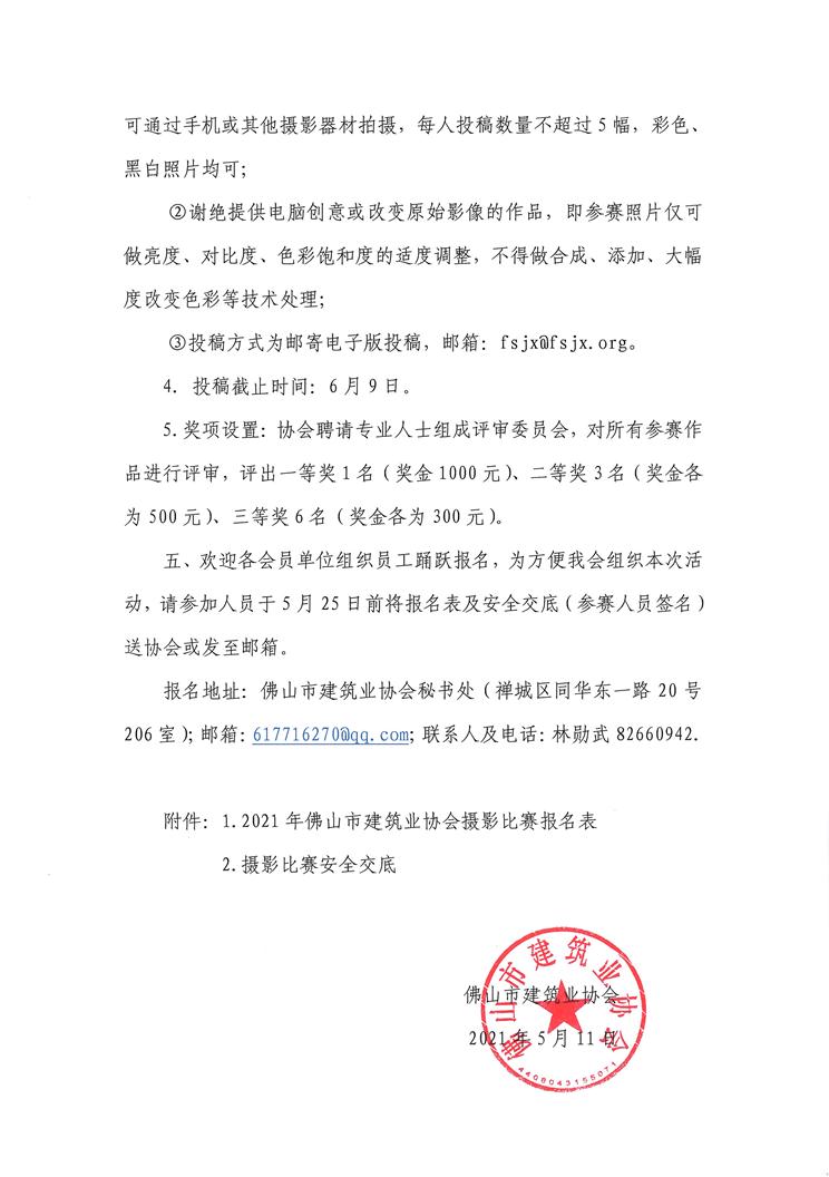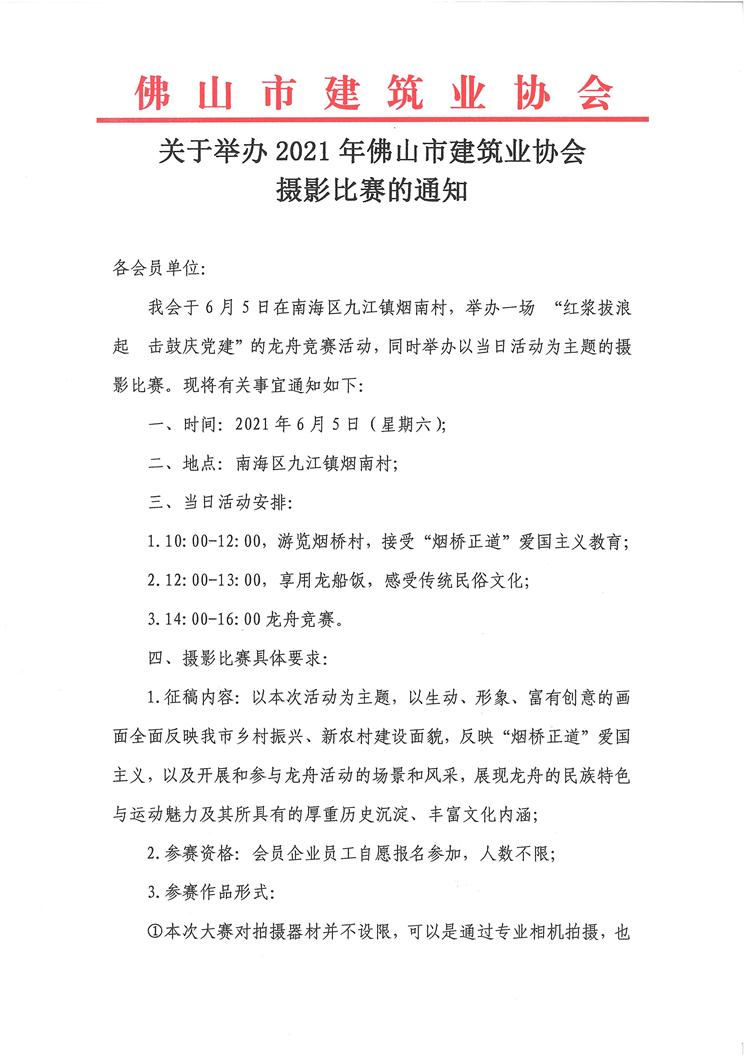關(guān)于舉辦2021年佛山市建筑業(yè)協(xié)會(huì)攝影比賽的通知(2021/05/12)