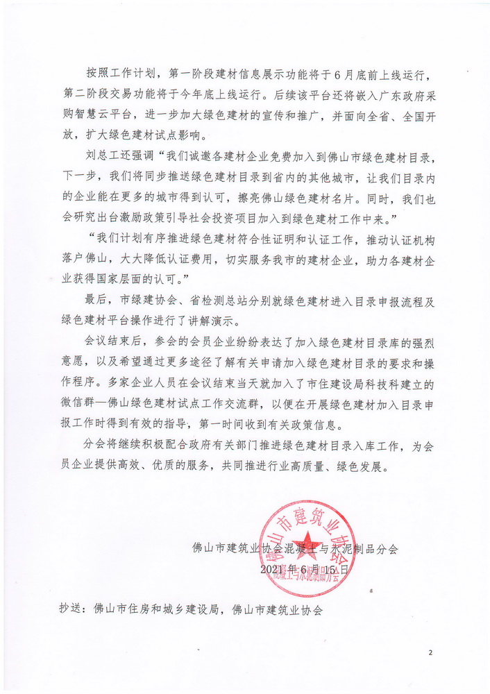 我市綠色建材進(jìn)入目錄動員工作顯成效(2021/06/15)