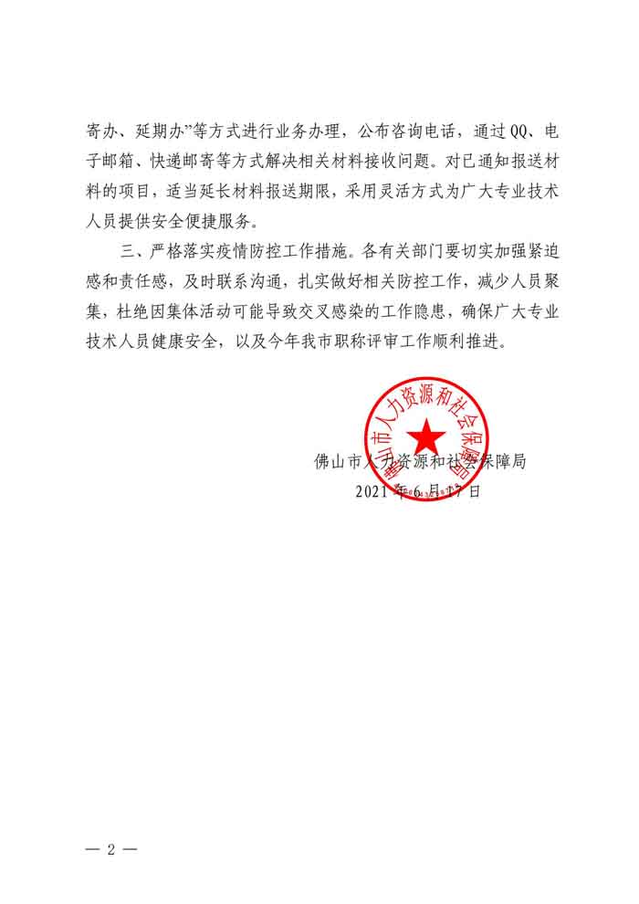 轉(zhuǎn)發(fā)佛山市人力資源和社會(huì)保障局關(guān)于做好疫情防控期間專業(yè)技術(shù)人員職稱評(píng)審集體活動(dòng)有關(guān)事項(xiàng)的通知(2021/06/18)