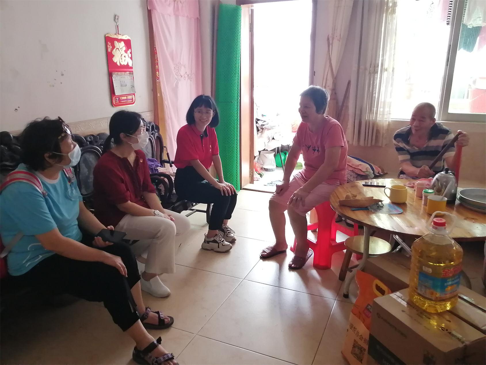 我會黨員代表(左二)在入戶慰問時與慰問對象聊家常