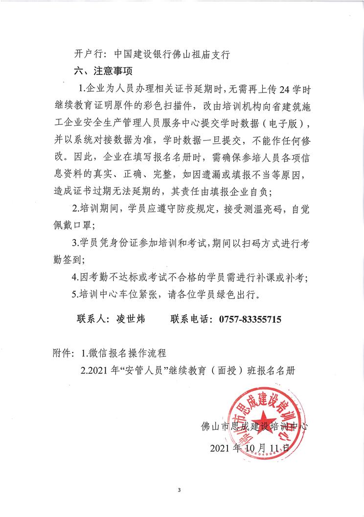 關(guān)于舉辦2021年“安管人員”繼續(xù)教育(面授)班的通知(2021/10/11)