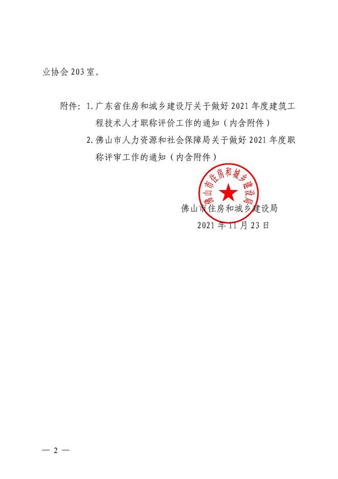 轉(zhuǎn)發(fā)佛山市住房和城鄉(xiāng)建設局轉(zhuǎn)發(fā)《廣東省住房和城鄉(xiāng)建設廳關于做好2021年度建筑工程技術人才職稱評價工作的通知》等文件的通知(2021/11/24)