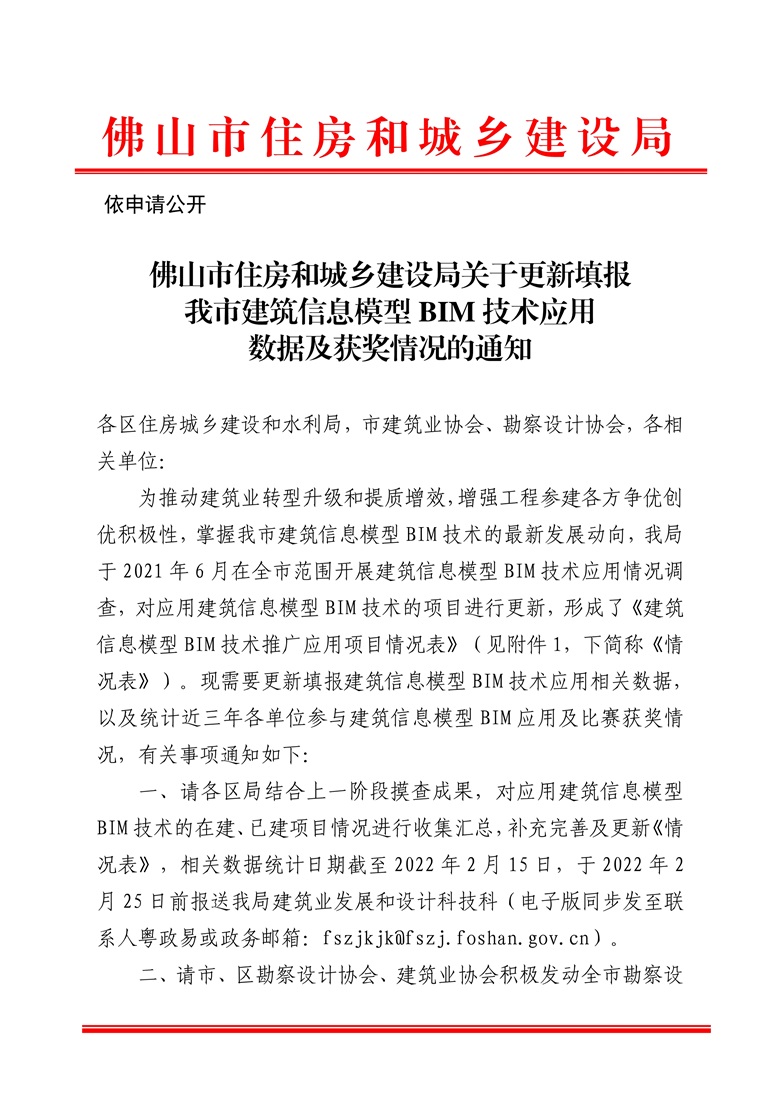 現將《佛山市住房和城鄉(xiāng)建設局關于更新填報我市建筑信息模型BIM技術應用數據及獲獎情況的通知》轉發(fā)給你們,請按文件要求填報后,直接報送至相應區(qū)局。