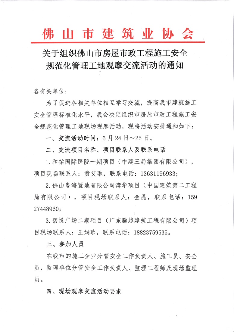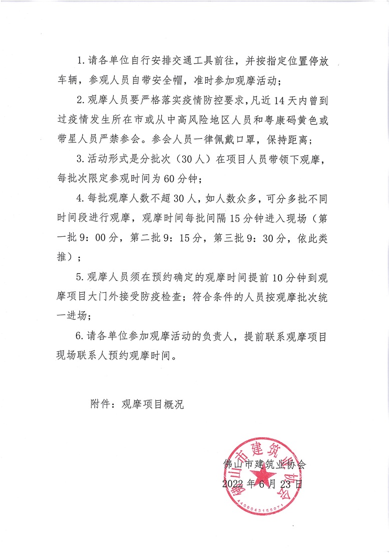 關(guān)于組織佛山市房屋市政工程施工安全規(guī)范化管理工地觀摩交流活動的通知(2022/06/23)