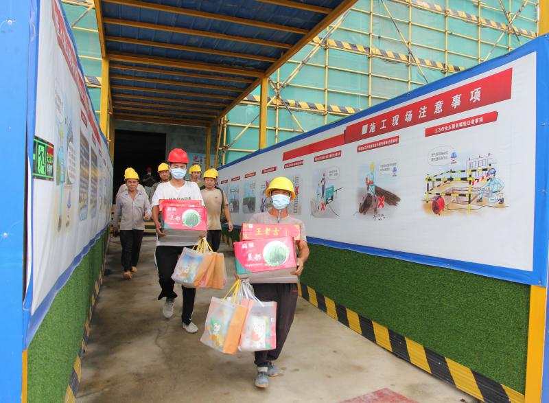 各支部黨員代表為項(xiàng)目工地的一線工人送上慰問品