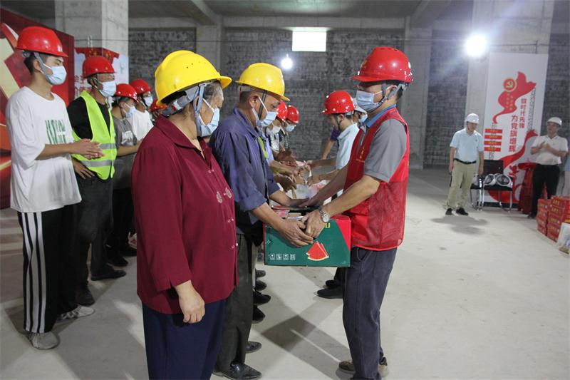 各支部黨員代表為項(xiàng)目工地的一線工人送上慰問品