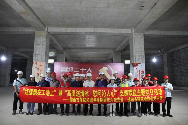 經(jīng)過了連日的高溫天氣,加上暴雨陣雨的反復(fù)洗禮,在工地上工作的工人,衣服是濕了又干、干了又濕,特別考驗(yàn)人的耐受力……從8月23日開始,佛山氣象臺(tái)多次發(fā)布臺(tái)風(fēng)預(yù)警信息。盡管臺(tái)風(fēng)來(lái)襲,卻也阻擋不了佛山映月智造產(chǎn)業(yè)中心項(xiàng)目的“紅色步伐”,8月25日上午,佛山市住房和城鄉(xiāng)建設(shè)局第六黨支部與市建筑業(yè)協(xié)會(huì)黨支部聯(lián)合組織了“紅旗飄在工地上”暨“高溫送清涼 慰問沁人心”支部聯(lián)建主題黨日活動(dòng),黨員帶頭為工地上的工人送去一絲清涼和沁心的慰問。
