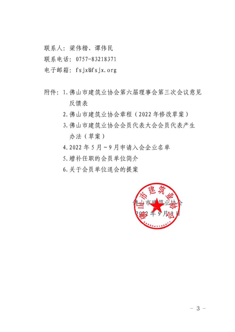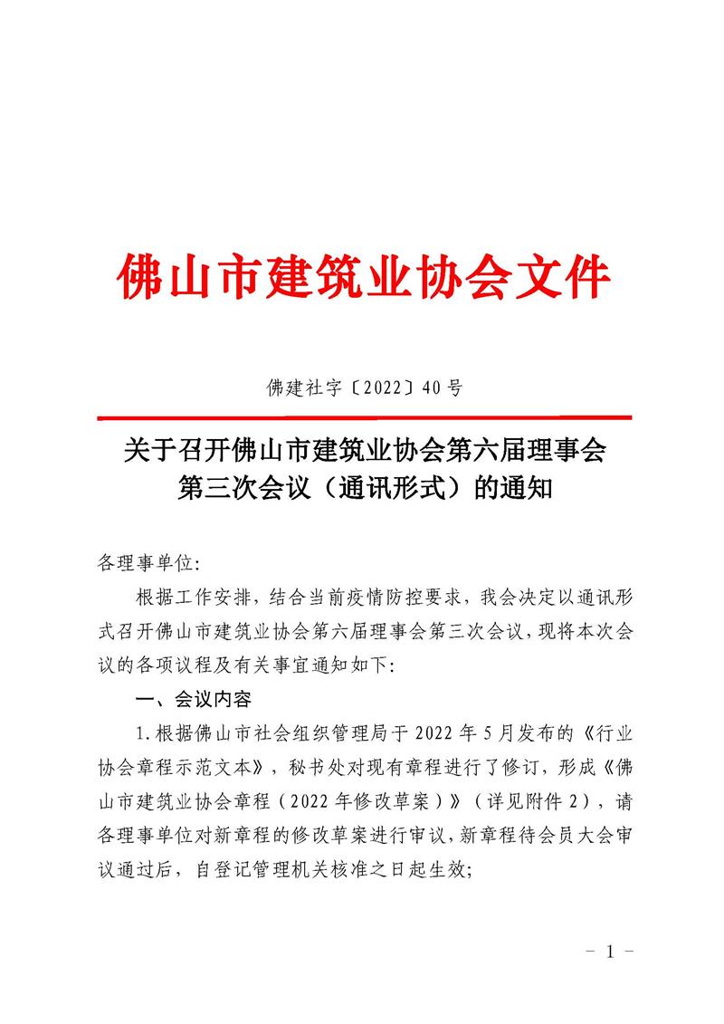 關(guān)于召開佛山市建筑業(yè)協(xié)會(huì)第六屆理事會(huì)第三次會(huì)議(通訊形式)的通知(佛建社字〔2022〕40號(hào))