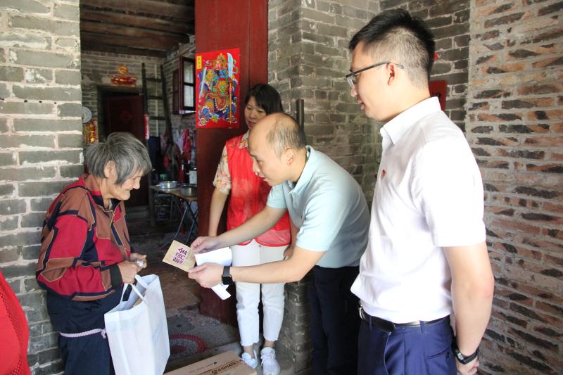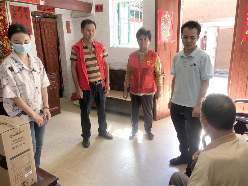 市建協(xié)黨支部書記雷毅文、中建映湖悅項(xiàng)目黨支部書記鄧偉與黨員、志愿者們帶著一腔熱心,手捧著暖風(fēng)機(jī)和土特產(chǎn),在丹灶鎮(zhèn)西城社區(qū)莊邊經(jīng)濟(jì)社黨支部潘燕玉書記、馮偉生社長的引領(lǐng)下分3組人員對莊邊村70歲以上老人和殘障人員進(jìn)行入戶慰問。