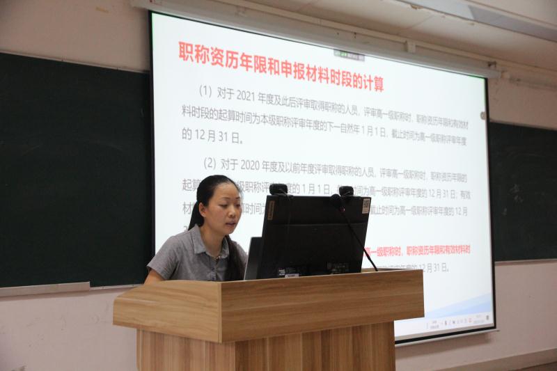 主講人楊旺娟在給大家詳細地說明職稱的資歷年限