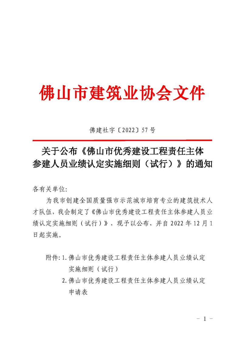 附件:1.佛山市優(yōu)秀建設(shè)工程責(zé)任主體參建人員業(yè)績認(rèn)定實(shí)施細(xì)側(cè)(試行) 2.佛山市優(yōu)秀建設(shè)工程責(zé)任主體參建人員業(yè)績認(rèn)定申報(bào)表