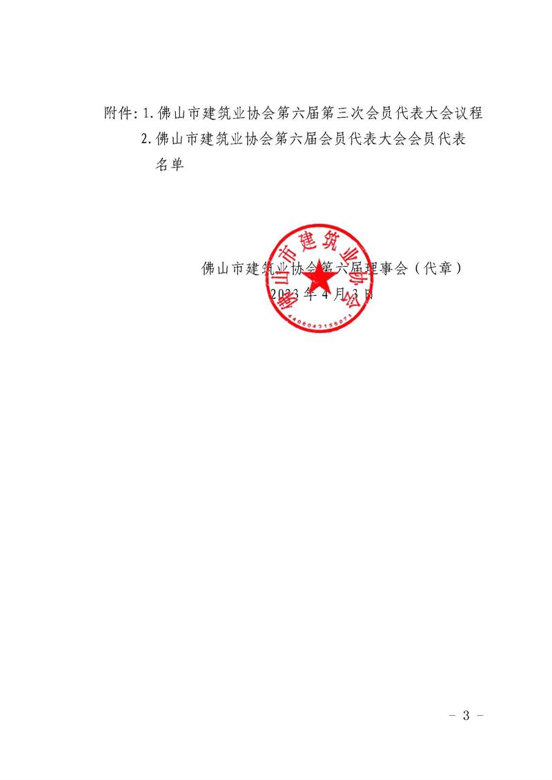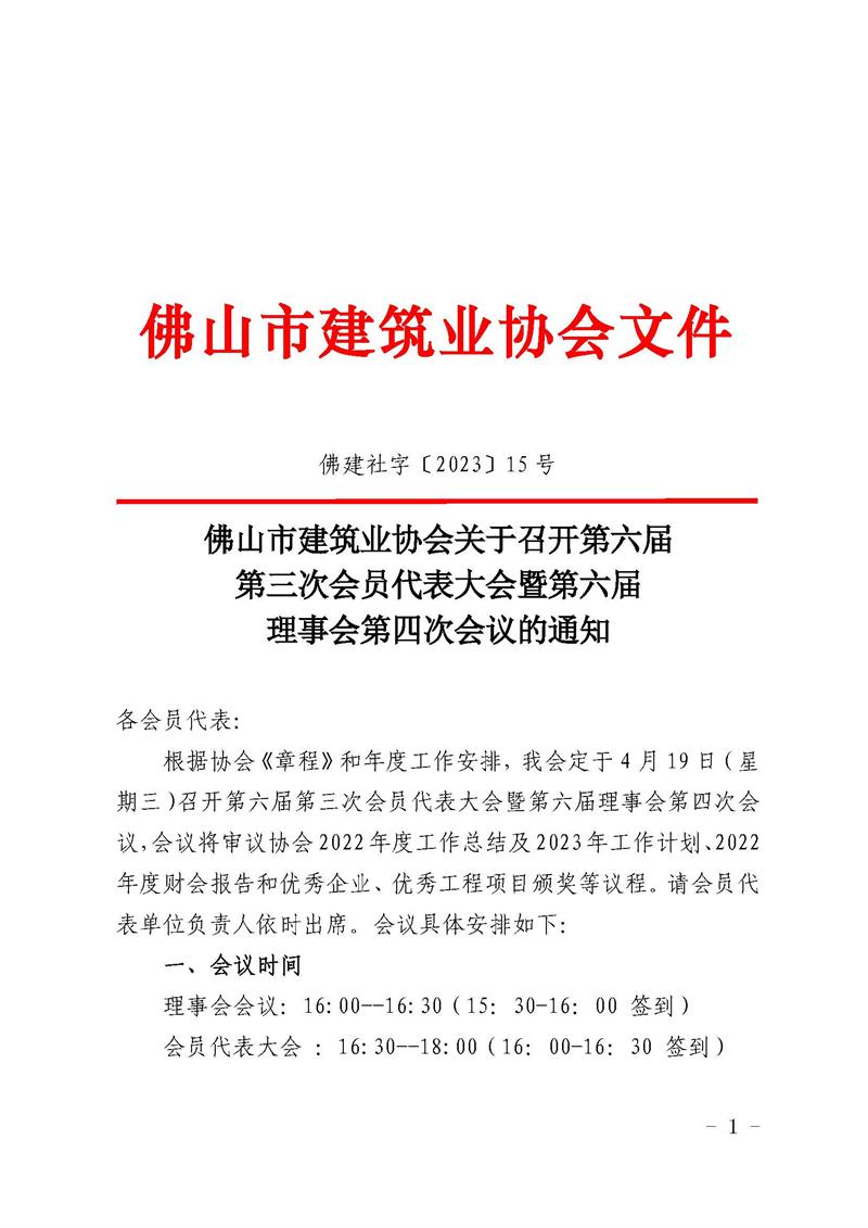 佛山市建筑業(yè)協(xié)會關(guān)于召開第六屆第三次會員代表大會暨第六屆理事會第四次會議的通知(佛建社字〔2023〕15號)