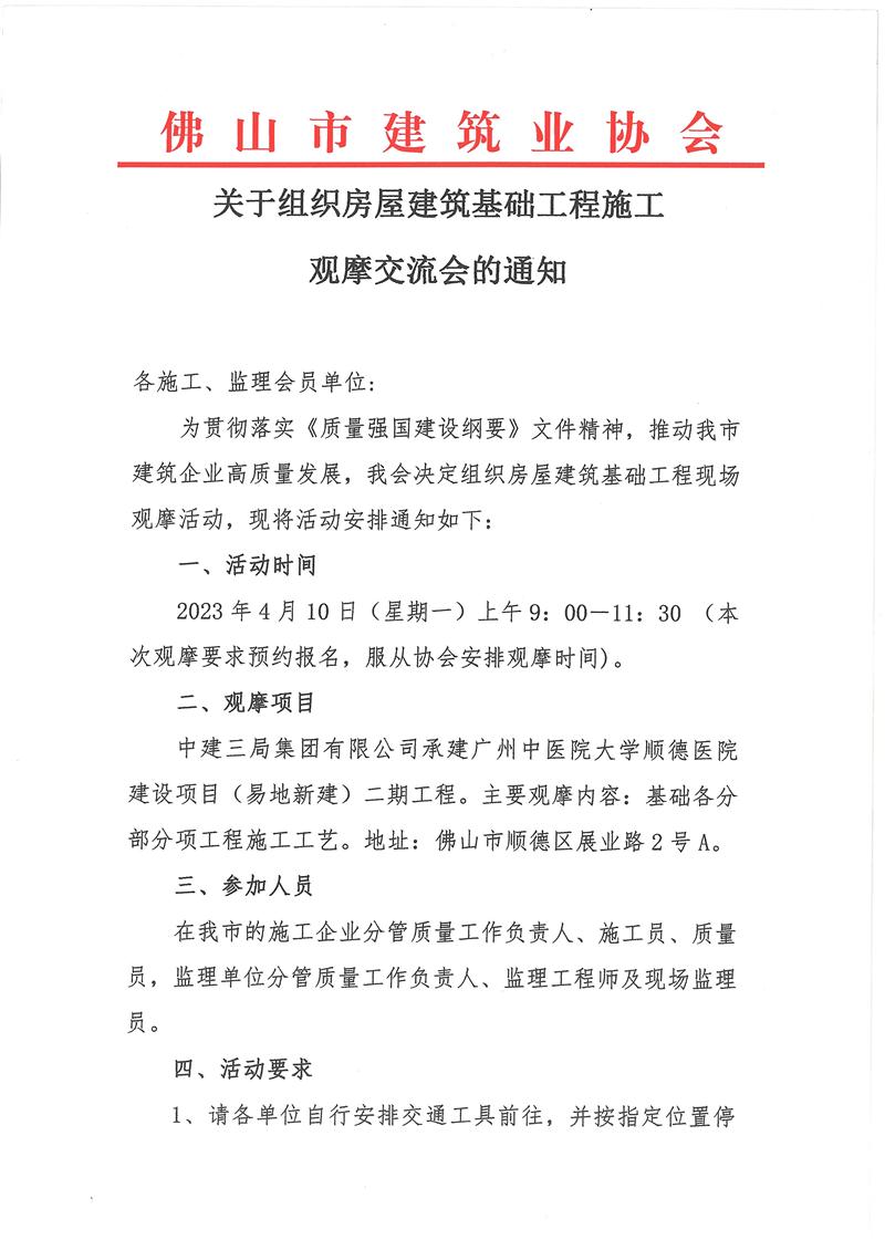 關(guān)于組織房屋建筑基礎(chǔ)工程施工觀摩交流會(huì)的通知(2023/04/06)
