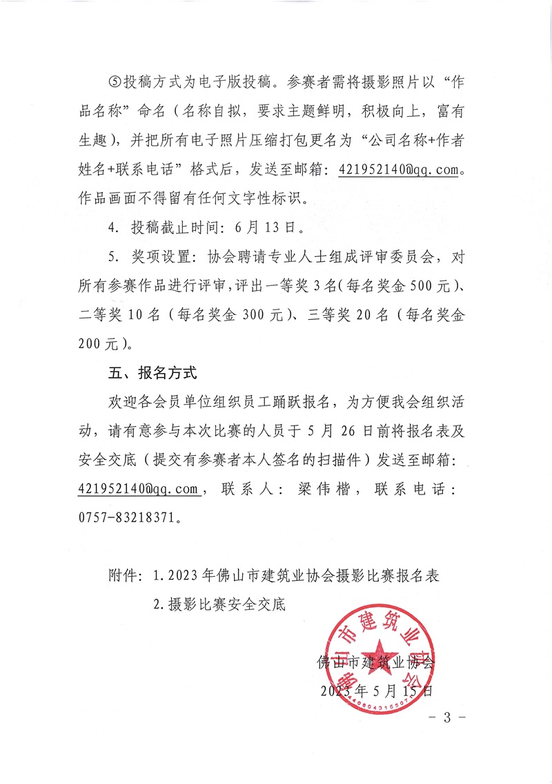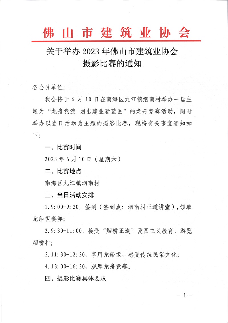 關(guān)于舉辦2023年佛山市建筑業(yè)協(xié)會(huì)攝影比賽的通知(2023/05/15)